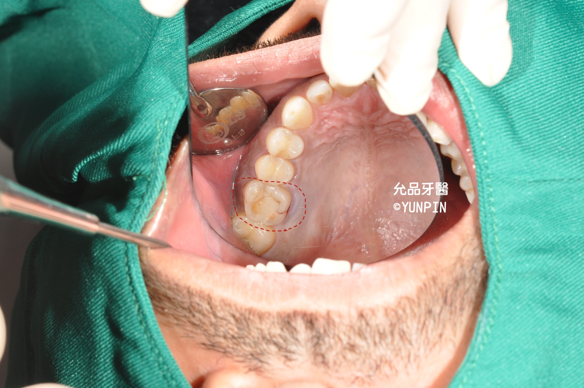 患者主訴牙痛,他家診所檢查為牙裂,口內實際狀況已有明顯裂痕